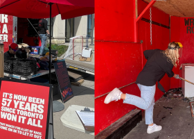 Коли хокейні команди вилітають з плей-офф, їхні вболівальники можуть бути дуже емоційними. Канадська мережа ресторанів Boston Pizza вирішиладопомогти торонтонцям випустити пар та підтримати їхні емоції.