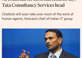 Керівник індійської ІТ-компанії Tata Consultancy Services К Крітівасан заявив Financial Times, що штучний інтелект призведе до «мінімальної» потреби в кол-центрах уже через рік.
