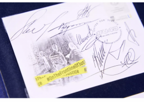 Поштова марка «United for Justice. Об’єднані заради справедливості» символізує спільні щоденні зусилля, спрямовані на забезпечення всеосяжної відповідальності Росії за міжнародні злочини