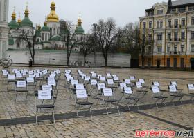 На Софійській площі встановили символічну інсталяцію з іменами ув’язнених, полонених та зниклих безвісти. Історії про деяких із них під час акції розповіли рідні, близькі та колеги.