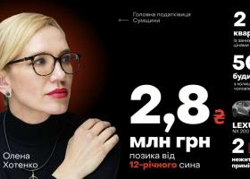От тільки найцікавіше те, що ці гроші їй позичив 12-річний син у 2018 році: Вона уточнила, що зараз синові Хотенко вже 18 років. Він є ФОПом та отримав 3 млн грн доходу за 2023 рік.