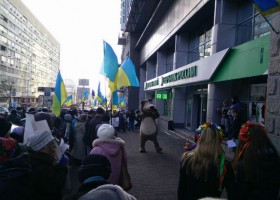 В Киеве возле одного из отделений "Сбербанка России" проходит акция протеста
