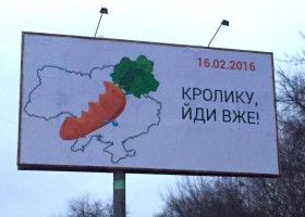 "Кролику, йди вже!". З таким гаслом у Києві з'явилися борди з натяком, що прем'єр-міністр Арсеній Яценюк має піти зі своєї посади.