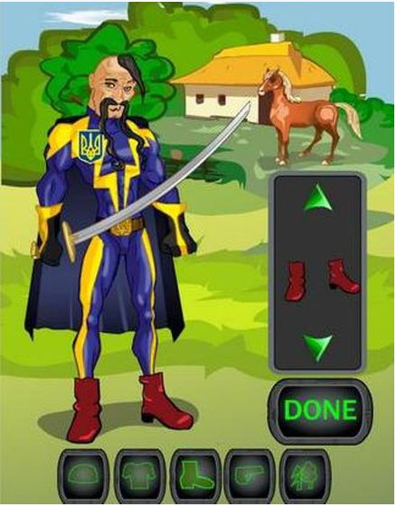 Сама игра предельно проста. Как объяснили "Сегодня" разработчики, пользователю нужно ловить ящики, которые падают с пролетающего в небе самолета. А в этих ящиках игрок находит одежду — в нее, собственно, и нужно нарядить казака, на котором изначально нет ничего, кроме шароваров. Таким образом, мускулистый герой с усами и чубом превращается, к примеру, в патриотичного супермена с трезубцем или в военного в камуфляже,пишет Сегодня