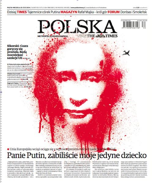Польский проект "The Times" печатает на обложке кровавое граффити с подписью "Путин, вы убили моего единственного ребенка".