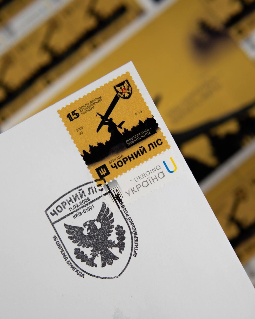 "Укрпошта" випустила лімітований поштовий випуск на честь героїв та героїнь 15-ї окремої бригади артилерійської розвідки "Чорний ліс".