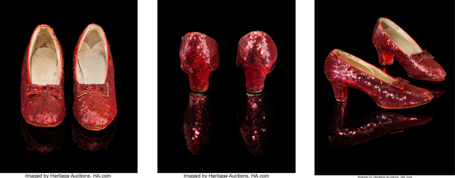 Часто взуття Дороті називають найціннішим реквізитом історії кінематографа. Виставлені на торги черевички – одна з кількох пар, які використовувалися для зйомок. Загалом залишилося чотири пари таких балеток. Аукціон пам’ятних речей з “Чарівника країни Оз” включає й інші предмети, серед яких капелюх Злої відьми Заходу та сітчасті двері з будинку Дороті в Канзасі