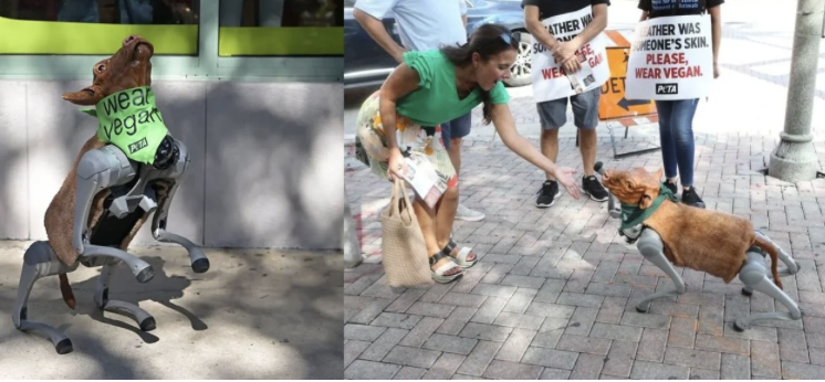 Щоб засудити використання шкіри тварин, організація створила роботизоване теля Charli XC Cow, яке блукало вулицями Нью-Йорка, щоб заохотити людей робити вибір на користь етичних і стійких матеріалів.