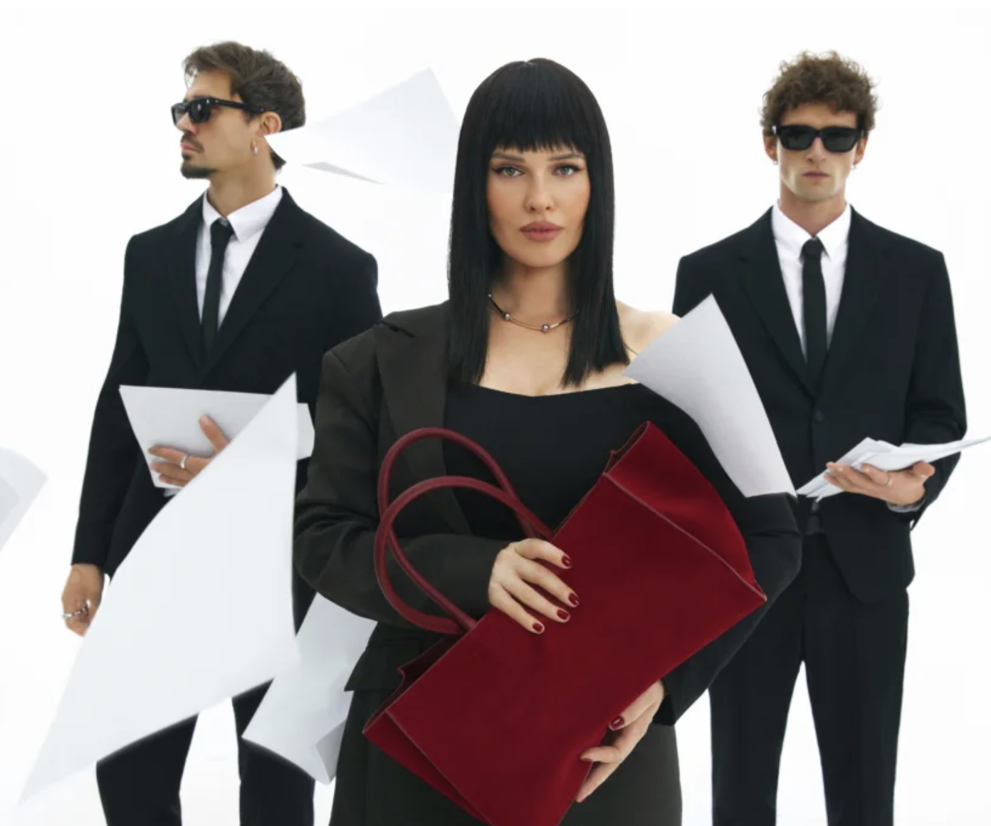 У модній зйомці представлено лінійку трендового взуття та сумок через елегантні та зухвалі образи героїні та її помічниці. А кожен аутфіт — відображає настрій та характер, відношення до роботи, колег чи до самої себе у ситуаціях, в які вона потрапляє.