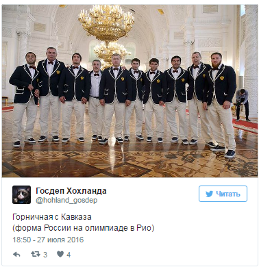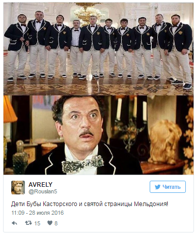 Вони помітили, що костюми російських олімпійців дуже нагадують одяг героя стрічки "Невловимі месники" Буби Касторського.