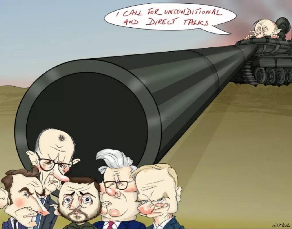 «Я закликаю до прямих переговорів без попередніх умов», — ідеться в карикатурі.