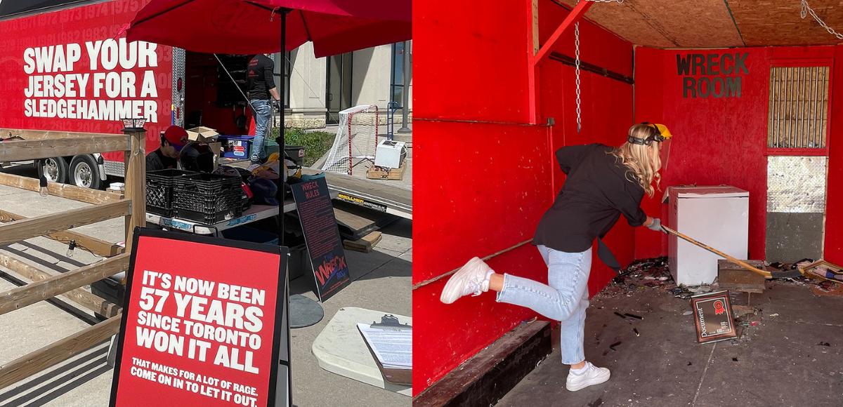 Коли хокейні команди вилітають з плей-офф, їхні вболівальники можуть бути дуже емоційними. Канадська мережа ресторанів Boston Pizza вирішиладопомогти торонтонцям випустити пар та підтримати їхні емоції.