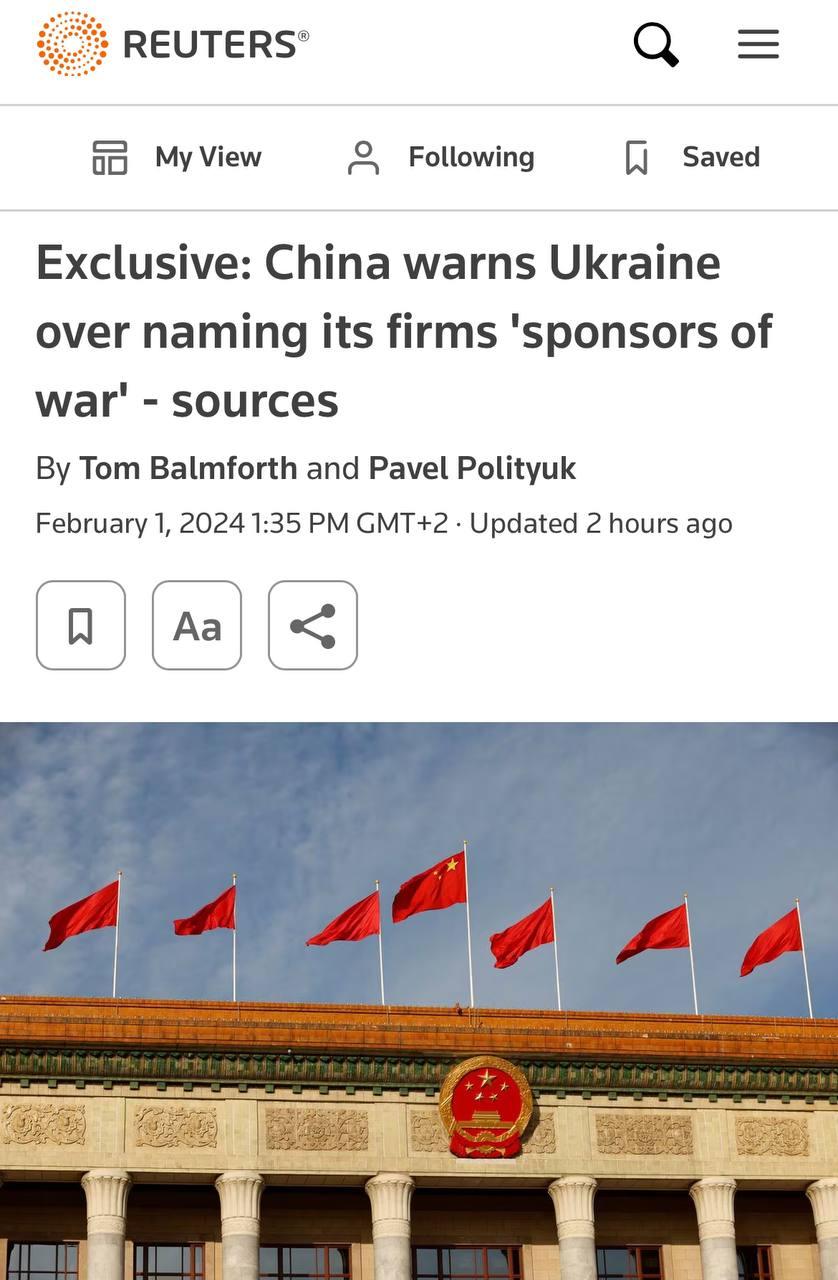 Співрозмовник Reuters додав, що в результаті Китай не висунув жодних умов або "тимчасових рамок" для України, а просто висловив свою точку зору щодо списку.
