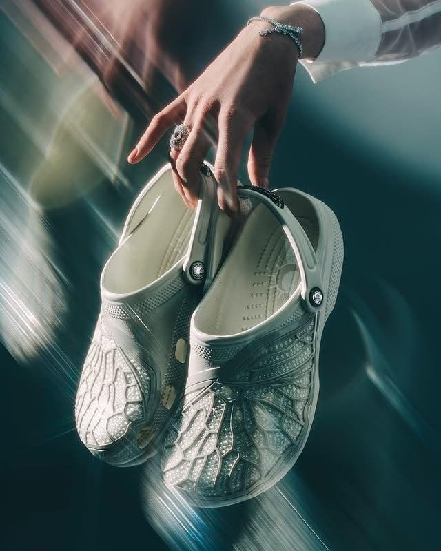 Компанії випустили блискучу лінійку сабо. До неї увійшли класичні Classic Clog і модель на платформі Bae Clog - обидві посипані кристалами Swarovski.