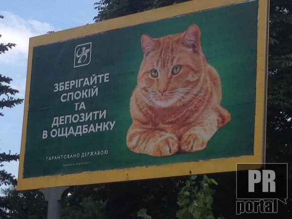 Стоит отметить, что совсем недавно рыжий кот был использован в рекламе депозитов Ощадбанка.