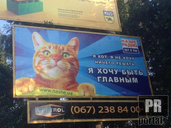 Котики - "наше" все. На рекламный билбордах "Нашего радио" появился рыжий кот, "который не хочет ничего решать", потому что хочет "быть главным".