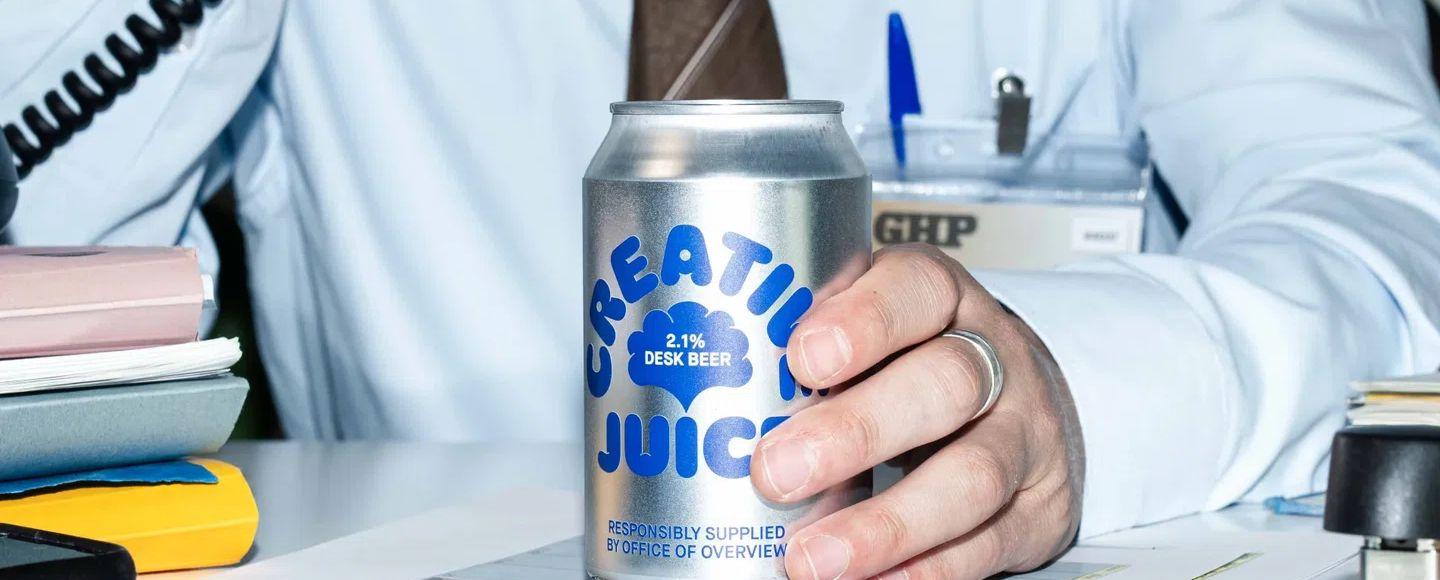 Саме це і надихнуло лондонську агенцію брендингу та дизайну Office of Overview взяти на себе сміливість розробити пиво Creative Juice з низьким вмістом алкоголю — 2,1%, яке можна пити в робочі години.