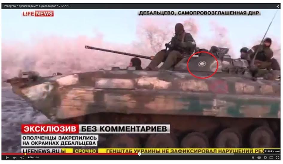 В вчерашнем сюжете российского пропагандистского канала “Life News”, который называется “Репортаж с происходящего в Дебальцево 15.02.2015″ в фокус объективов попала техника с нанесенным на нейтактическим знаком 136й ОМСБр ,сообщает InformNapalm.