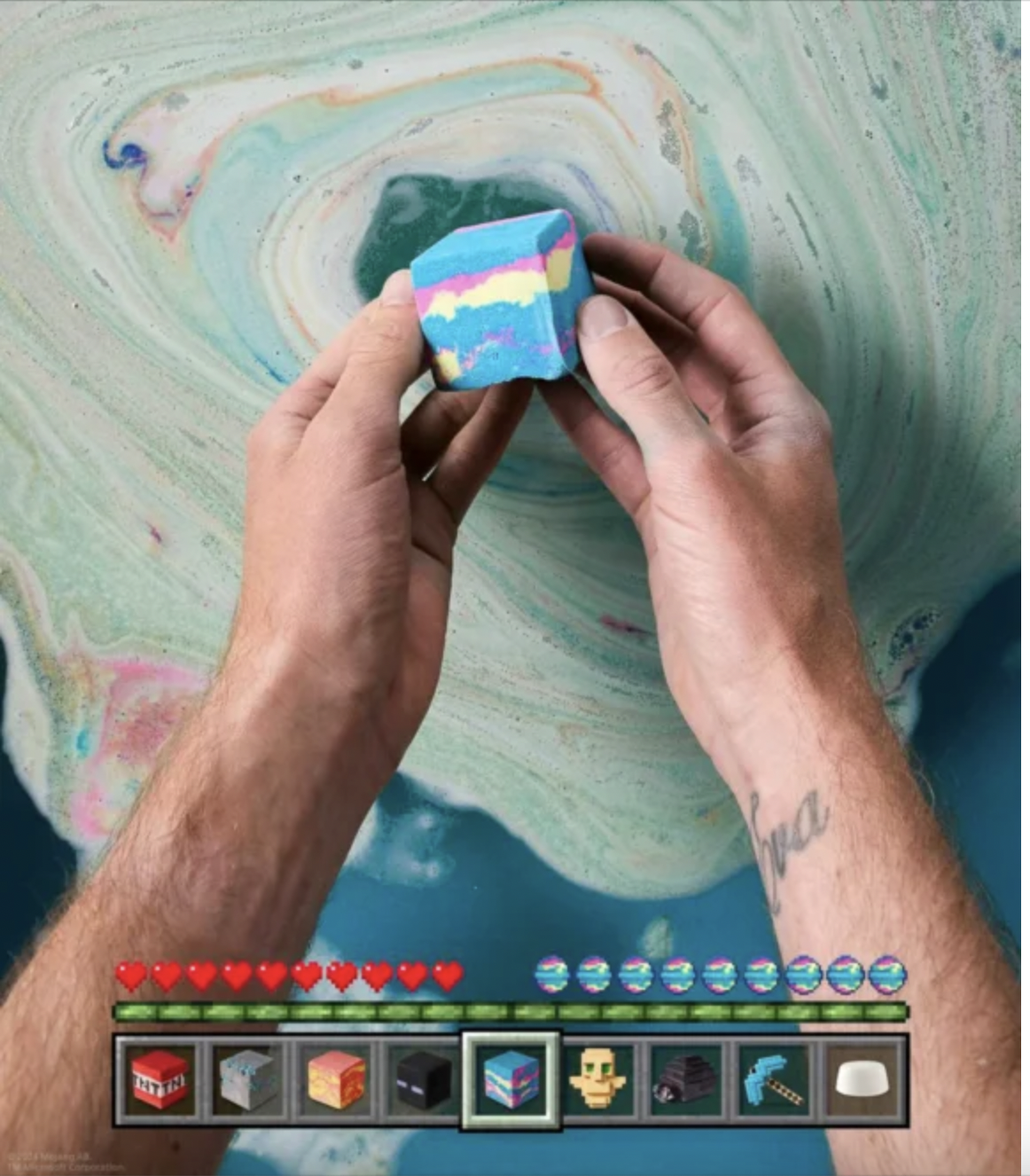 Демонструючи, що царини краси та Minecraft не надто відрізняються один від одного, нова лінійка містить 13 засобів для ванни, які, як і гра, можна змінювати та доповнювати за бажанням користувача. Завдяки цьому персоналізованому досвіду бомби для ванни, мило та желе для душу створені для того, щоб пінитися та імітувати Верхній світ, створюючи справді унікальний відпочинок у ванній кімнаті.