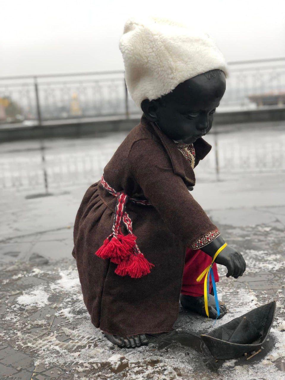 Маленькі Кий, Хорив та Либідь вбрані у традиційні українські костюми.