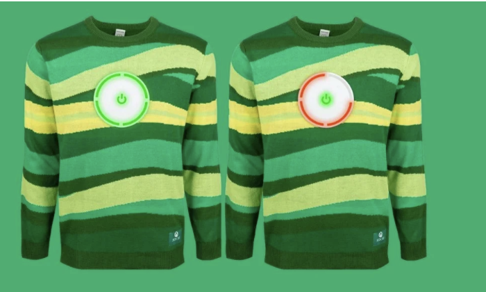 Светр містить кнопку, яка світиться зеленим кольором, а також змінний модуль, який відкриває «червоне кільце смерті».