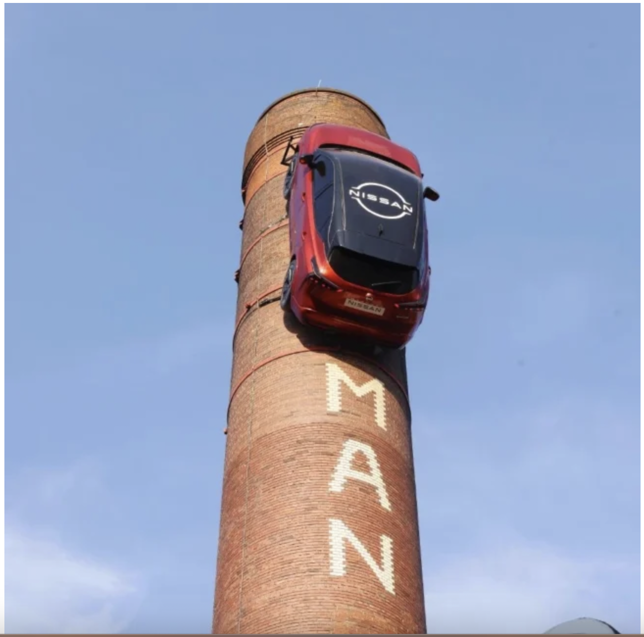 Тепер перехожі можуть побачити модель Qashqai британського виробництва, прикріплену до верхівки 49-метрової димової труби пивоварні Truman Brewery — 200-річної лондонської пам’ятки, розташованої по вулиці Брік Лейн у районі Шордіч.