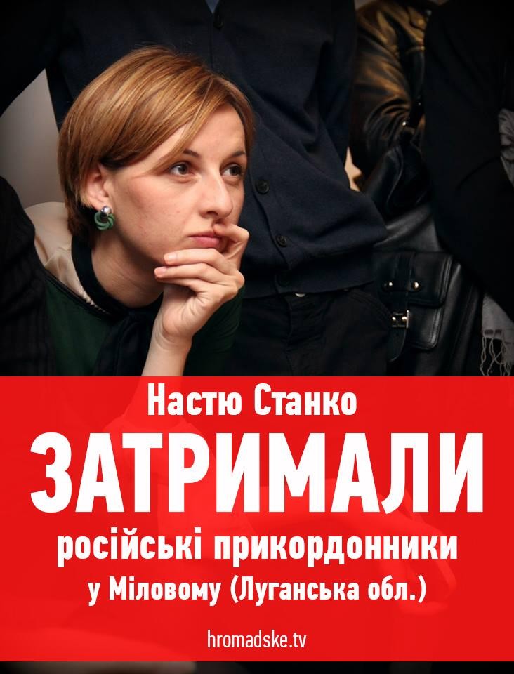 Российские пограничники задержали журналистку Hromadske TV Анастасию Станко в украинском селе Меловое на Луганщине на границе с РФ. Об этом Украинской правде сообщили ее коллеги из Hromadske TV.