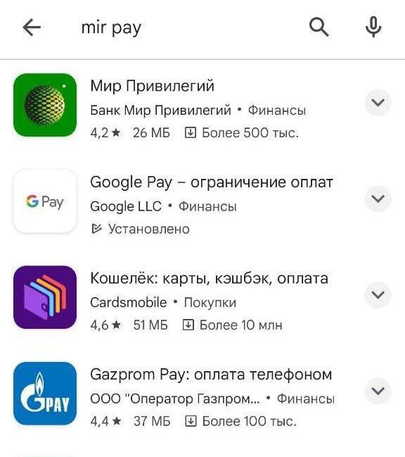 З Google Play зникли програми, "Mir Pay", "СБПей" та "Привіт Мир".