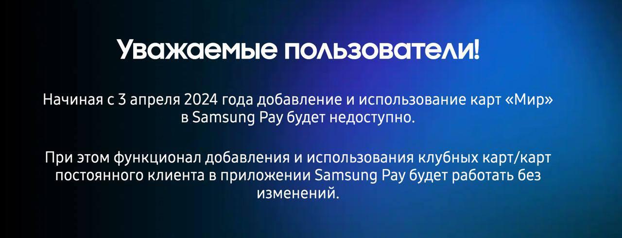 В заяві компанії Samsung на офіційному сайті сказано, що картки "Мир". будуть автоматично видалені із сервісу 3 квітня.