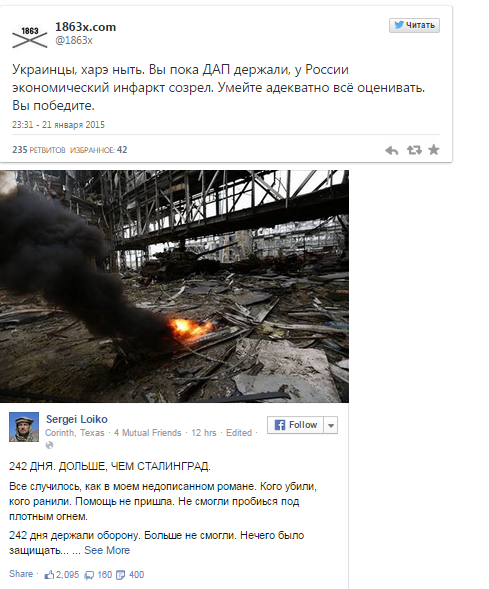 Также пользователи выразили уверенность, что, несмотря на то, что украинским военным пришлось покинуть остатки Донецкого аэропорта, победа еще впереди,пишет НВ