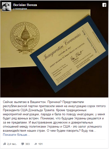 Инаугурацию 45-го президента Соединенных Штатов Америки Дональда Трампа посетит ряд украинских чиновников.