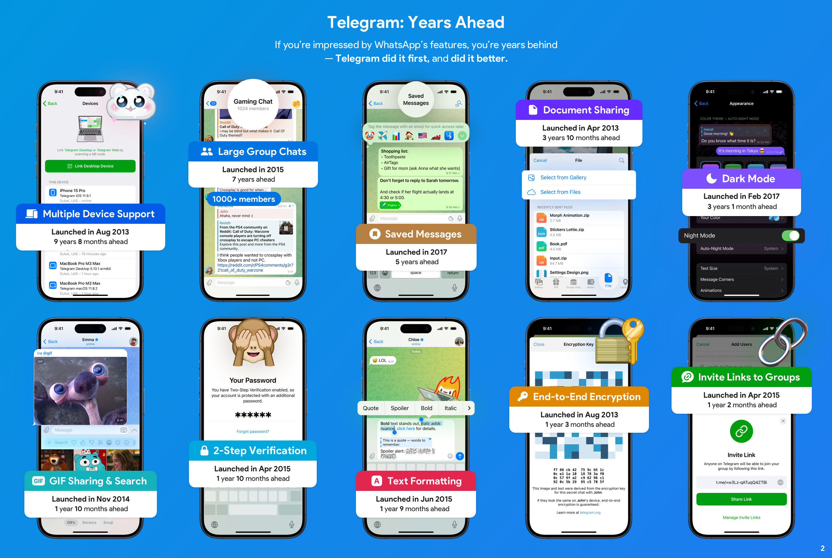 У ролику (короткий, до 180 секунд, вертикальний формат) має бути показано, як Telegram представив різні ключові функції за роки до того, як WhatsApp скопіював або прийняв їх до робочих версій месенджера. Роботи приймаються до 26 травня, результати будуть оголошені у червні 2025 року.