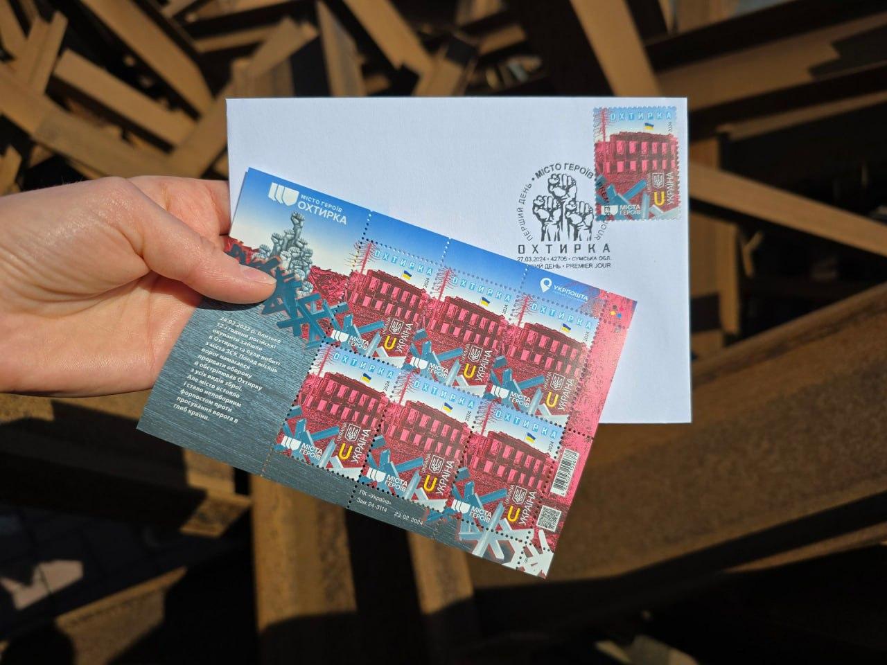 «Кожне місто-герой — це його люди, перш за все. Люди, які самовіддано обороняли Охтирку та інші міста, що їх націлено хотів захопити ворог у разі поразки цього форпосту. Люди, які віддали життя, виборюючи й захищаючи кожен метр української землі на Сумщині», — кажуть в Укрпошті.
