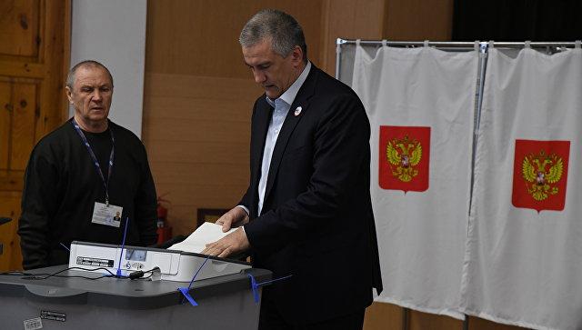 Самопровозглашенный "глава" Крыма Сергей Аксенов одним из первых проголосовал на выборах президента РФ