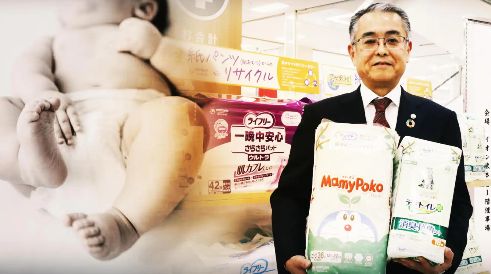В Японії зростає кількість людей похилого віку, тоді як народжуваність знижується. Попит на продукцію для старшого покоління підвищується, тож у країні вирішили робити з перероблених дитячих підгузків аналогічний продукт для пенсіонерів. Цим займається компанія Unicharm з південно-західної префектури Кагосіма.