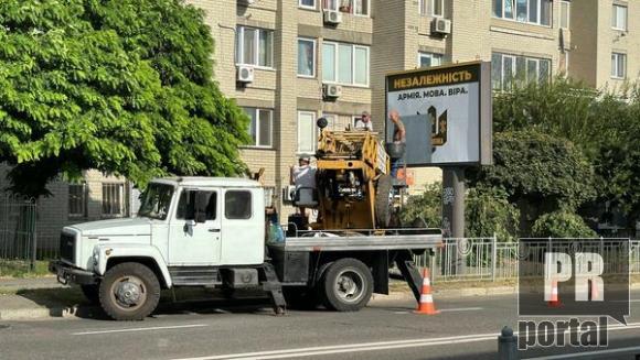 Фонд Порошенка повідомив, що за вказівкою влади демонтували вітальні борди “Армія. Мова. Віра. Незалежність”.