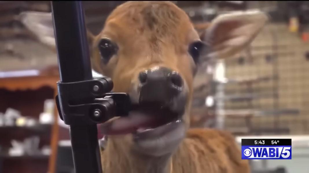 Збройний магазин A&G Shooting із міста Ферфілд у штаті Мен найняв на роботу теля карликової породи зебу. Кейд, так його назвали, покинула мама. Але тепер тварина приносить радість відвідувачам.