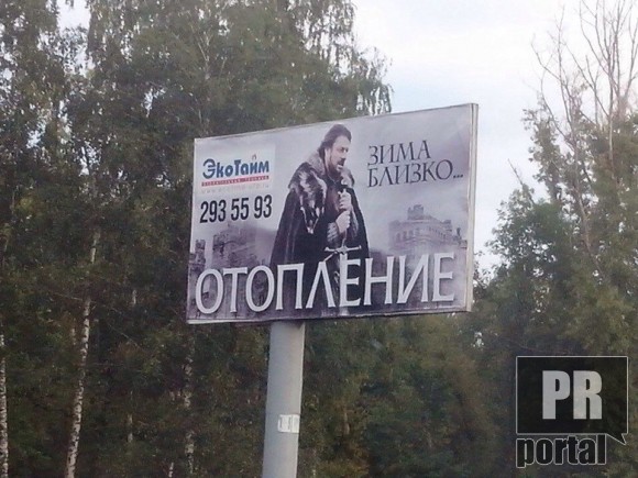 Российская компания отопительной техники "Эко Тайм" недолго думали над своей рекламой, за них это сделал всемирно известный сериал "Игра престолов" в которого они украли и постер и слоган .В интернете таких рекламщиков прозвали "Богами маркетинга"