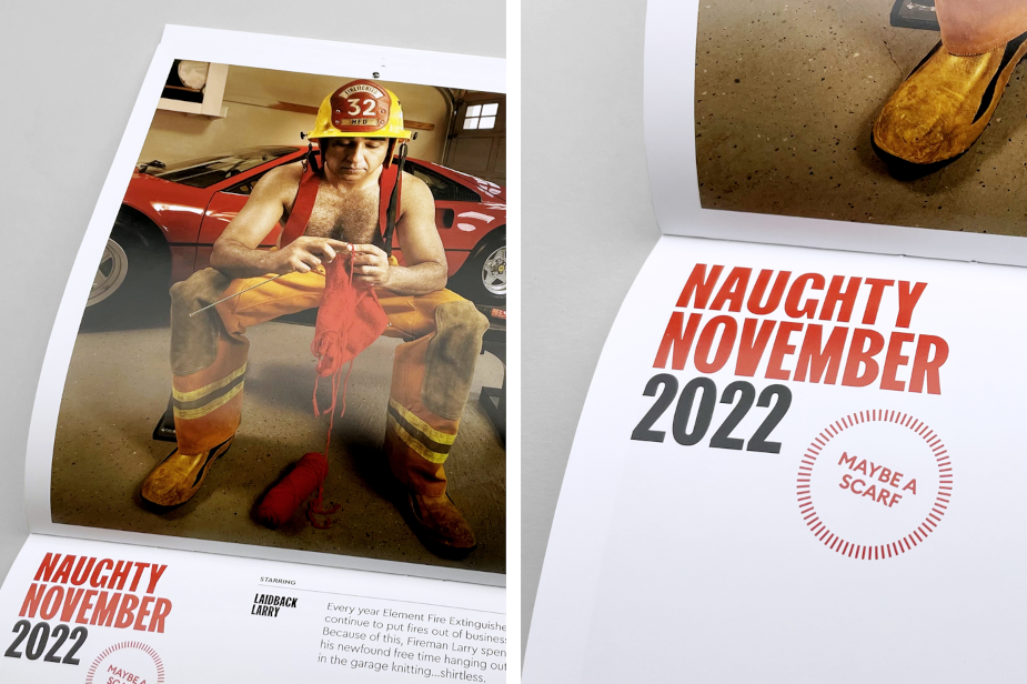 Календарь был создан в сотрудничестве с рекламным агентством The Local Collective и является частью кампании Putting Fires Out of Business бренда Element. Процент от продаж каждого огнетушителя во время праздничного сезона будет передан Национальному фонду погибших пожарных и Канадской ассоциации погибших пожарных.