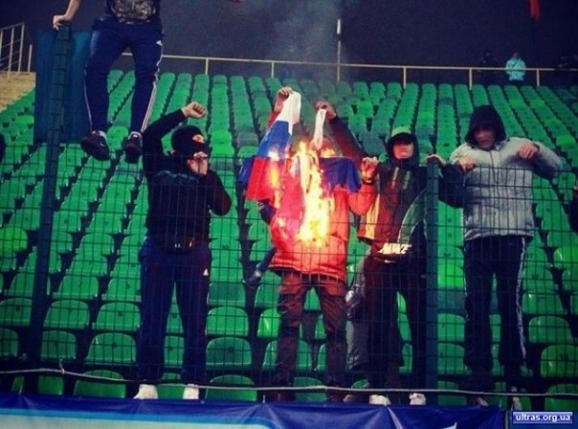 Фани створили яскраву атмосферу на стадіоні. Дісталося також і прапору Росії,пише Еспресо.TV
