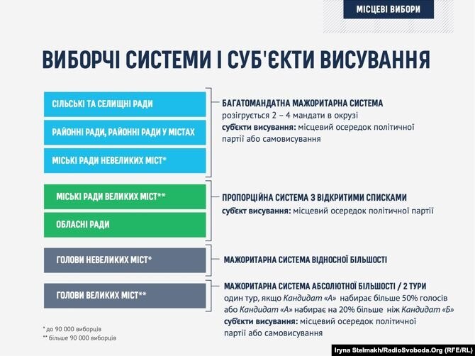 За півроку до місцевих виборів народні депутати ще не вирішили, за якою системою їх проводити. Попри чітке зобов’язання, зафіксоване у коаліційній угоді, провести місцеві вибори за пропорційною системою з відкритими списками, у Верховній Раді вже зареєстрували чотири законопроекти, деякі з яких відкрито суперечать такому зобов’язанню. Та попри відчутну різницю між ними, найгіршим варіантом для України буде, якщо жовтневі вибори проведуть за старим законом, кажуть експерти.