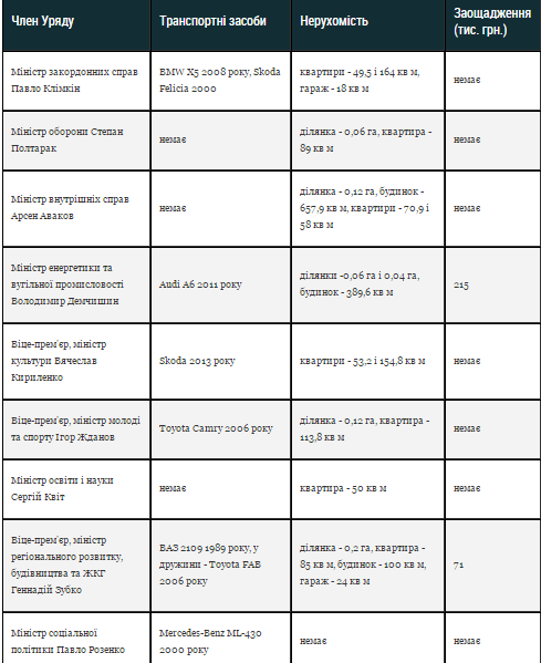 Наприклад, в минулому складі найбагатшим міністром був голова Мінекономіки Павло Шеремета, який задекларував 1,75 млн грн. доходу за 2012 рік, а найбіднішим – голова МЗС Андрій Дещиця, що зміг прожити 2012 рік, заробивши всього 10 тисяч грн