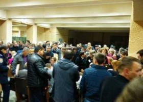Стовпотворіння і бійки виникли з самого ранку в Харківському міськвиборчкомі: представники дільничних виборчих комісій здають протоколи про підрахунок голосів з виборівх депутатів обласної ради.