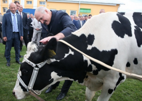 Президент Білорусі Олександр Лукашенко отримав у подарунок корову високопродуктивної голштинської породи, яка дає 36 літрів молока в день.
