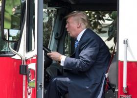 Американський лідер заліз в кабіну пожежної машини.