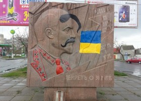 В Николаеве в ночь на 20 апреля неизвестные придали украинский колорит барельефу ладимиру Ленина, который расположен на проспекте Ленина, возле Херсонского кольца